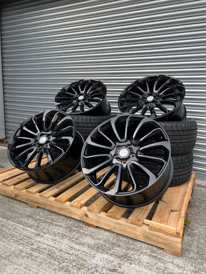 Set of 4x 22-Inch Gloss Black Turbine Style Alloys – range rover + land rover fitment